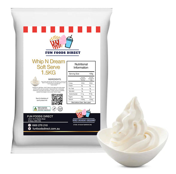 Simply mix 1.5kg of powder with 3.5 litres of cold water, allow it to stand for 10 minutes, and let it work its magic in your soft serve machine. The result? A smooth, velvety soft serve that keeps customers coming back for more.
